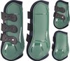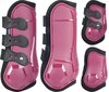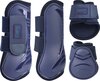 4-delige Set beenbeschermers waarvan 1 paar hoge peesbeschermers en 1 paar lagere strijklappen Prachtige peesbeschermers met een perfecte pasvorm en sterke, elastische sluitingen. Door de speciale knopsluiting is er geen klittenband nodig. De "metal mesh" ventilatiegaten in de schaal zorgen voor ventilatie en beluchting. Door de optimale pasvorm heeft het paard veel bewegingsvrijheid. De TPU buitenschaal beschermt tegen aantikken en heeft een extra verdikking op de pees en op de kogel voor extra bescherming. zacht gevoerd met neopreen Machine wasbaar
