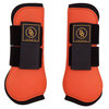 De peesbeschermers hebben een harde buitenschaal van polyurethaan en een neopreen voering. De neopreen voering is zacht voor het gevoelige paardenbeen. De beschermer sluit met klittenband en heeft een extra klittenbandoverslag die voorkomt dat de klittenbandsluitingen los kunnen gaan.