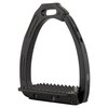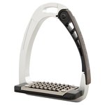Deze stijgbeugel is gemaakt van gegalvaniseerd aluminium met een poedercoating en is aan de binnenkant versterkt met roestvrijstaal voor extra stevigheid. De beugel is uitgerust met een magnetisch veiligheidsmechanisme. Het gewicht van de ruiter zorgt ervoor dat de beugel opent bij een val. Op deze manier blijft de voet niet in de beugel hangen. Zodra de voet de beugel verlaat, sluit de beugel zich automatisch. De licht gebogen stijgbeugelriemophanging zorgt voor een goede beugelpositie, waardoor de voet in de juiste positie gehouden wordt. Dit geeft de ruiter meer stabiliteit, verbetert de beenligging en ontlast knieen/heupen/enkels. Doordat de ruiter soepeler de bewegingen van het paard kan volgen wordt het paard minder belast.