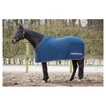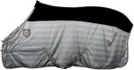 Mesh deken met een warme fleecebaan over de rug die vocht opneemt zodat de rug niet te snel afkoelt en de spieren warmblijven dit voorkomt spierpijn na de trainer, de deken heeft een champagnekleurige banner met het EQS logo, enkele voorsluiting en een staartlus