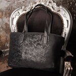 Luxe laarzentas met allover quilt, Denici Cavalli logo met kristallen, een opbergvak met rits aan de buitenkant, comfortabel handvat in zwart/beige, verstelbare schouderband met het Denici Cavalli logo, stoffen tussenschot aan de binnenkant en kunststof noppen aan de onderkant.