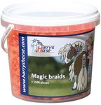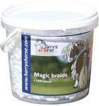 Omschrijving: Stevige elastiekjes voor het invlechten van de manen. Extra sterk, flexibel en herbruikbaar! Wordt geleverd in handig potje incl. manenkam. Ong. 1500 elastiekjes per potje (1 liter)