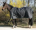 Outdoordeken met t/c voering. Naadloos op de rug, 200g polyfill vulling. Voorzien van loopsplit en staartflap. Dubbele snelsluiting, nylon voering bij borst, kruissingels en afneembare bilkoorden. Gevouwen coupenaden, getapete zijnaden. D-ringen aan hals voor halsdeel. Waterdichtheidwaarde: 2000wr/wp, ademend vermogen 2000 mvp.