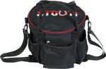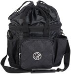 Poets/helmtas met allover quilt, Denici Cavalli logo met kristallen, webbing rondom met het Denici Cavalli logo, een contrasterende bovenzijde afsluitbaar met een tweekleurig trekkoord, twee opbergvakken aan de buitenkant, verstelbare schouderband met het Denici Cavalli logo en kunststof noppen aan de onderkant.