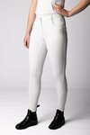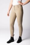 Luxe Rijbroek met rondgenaaid zitvlak voorzien van een siliconen print voor extra grip in het zadel, steekzakken en twee kontzakken met ritssluitig, flexlegs voor extra comfort in de rijlaarzen, rosegold ritsen en kristallen, sierstiksels in Rose, een clarino badge met het Denici Cavalli logo op de achterkant.