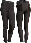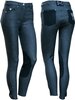 Rijbroek denim look met schuifgespsluiting en rits, twee steekzakken kristallen, jeanspocket met kristallen kroon pin, kontzakken in kunstleder waarvan 1 met logo, suede badge logo op tailleband, kunstleder kniestukken en klittenbandsluiting aan onderzijde broekspijp.