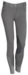 Rijbroek met contrasterende stiksels, steekzakken, rondgenaaide achterzakken met felgekleurde studs, lycra flex legs en een synthetisch lederen full seat.