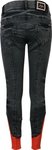 Rijbroek met gespknoop en ritssluiting, rondgenaaid stretch kunstleder, twee steekzakken, elastissche inzet onderzijde pijp, twee kontzakken met borduursels, stervormige studs