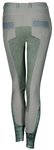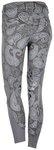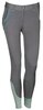 Rijbroek met contrasterende stiksels en pipings, steekzakken en achterzakken met prints en borduringen. Contrasterende lycra flex legs en syntethisch lederen kniestukken.