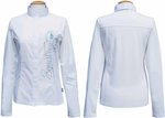 Rijbroek met schuifgesp en ritssluiting, riemlussen, rondgenaaid zitvlak, elastische inzet onderzijde pijpen, met leuk borduursel.