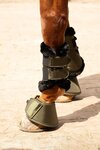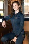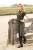 Rijlegging met twee ritszakjes, shiny coating detail op het dijbeen, rondgenaaid zitvlak voorzien van siliconen print voor extra grip en elastische uitsparing rond de enkels voor meer comfort in de rijlaarzen.