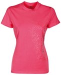 Tshirt met ronde hals, korte mouw, langere afgeronde achterkant, print op voorkant en badge op achterkant