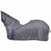 Vliegendeken "Mesh" met hals en zadeluitsparing. Soepel en sterke stof. Dubbele degelijke metalen fournituren bij de borst, 3 stuks aan de hals, elastische en afneembare bilkoorden, loopsplitten en Extra lange staartflap.De deken is voorzien van gladde binnenvoering bij hals en borst zodat de manen/borst niet beschadigen)