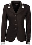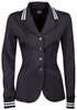 Sportief wedstrijdjasje van hoogwaardig stretch materiaal. Het jasje is uitgevoerd met een rib kraag en manchet met contrast strepen erop, een blinde ritssluiting met voorop knopen, zakjes met waterprooflook ritsen en zipperpullers en een dubbele split op de achterzijde.