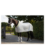 Zomerdeken van extra sterke kwaliteit polyester, valt soepel en is voorzien van dubbele voorsluiting, kruissingels met dopjes (voorkomen losraken), staartflap, loopsplitten en afneembare bilkoorden.